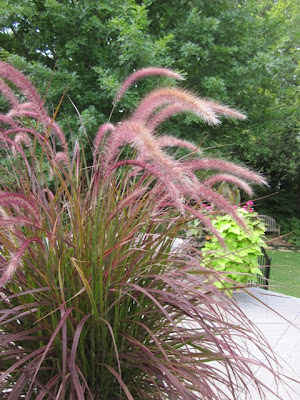 Here's a variegated purple fountaingrass I tried this year in a container.